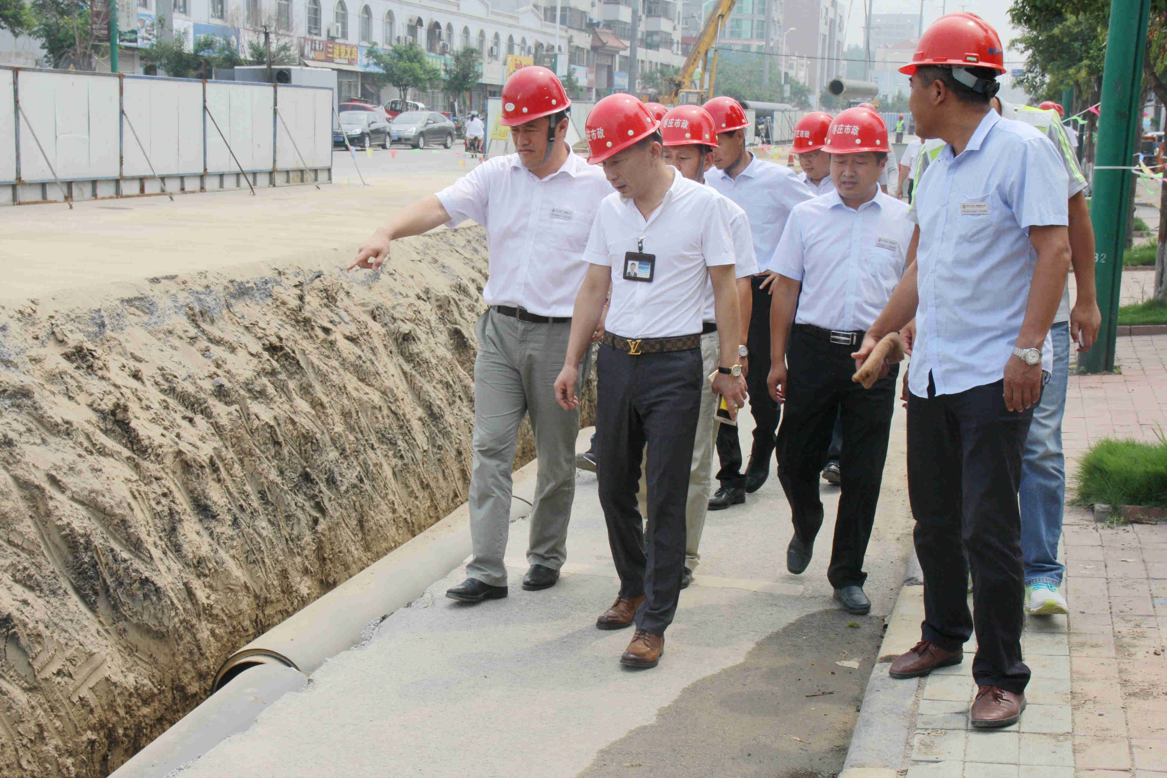 隨后,檢查組一行沿著管溝沿線邊走邊看邊詢問,詳細(xì)了解了工程施工工序、工程進(jìn)度安排并聽取了項(xiàng)目經(jīng)理對(duì)工程進(jìn)展情況及工程施工難點(diǎn)等方面問題的匯報(bào)。通過實(shí)地檢查,趙峰董事長(zhǎng)對(duì)工地現(xiàn)場(chǎng)管理及工程施工質(zhì)量表示了充分肯定。同時(shí),也指出了工程施工過程中存在的問題。他指出,施工現(xiàn)場(chǎng)在用電設(shè)施安裝使用方面還需要進(jìn)一步加強(qiáng)規(guī)范安裝和規(guī)范操作;工地圍擋范圍內(nèi)的溝槽圍擋還要進(jìn)一步按照單位內(nèi)部施工規(guī)范要求做好,加大安全巡查和管理力度,徹底消除安全隱患,確保施工安全。在安全文明施工方面,要嚴(yán)格按照安全文明工地標(biāo)準(zhǔn)要求做好現(xiàn)場(chǎng)文明施工工作。同時(shí)注意做好細(xì)部處理工作,將工地?fù)P塵、噪聲降至最低,渣土垃圾及時(shí)清運(yùn)打掃干凈。在保證工程施工質(zhì)量的同時(shí),向沿線居民及全社會(huì)樹立好棗莊市政優(yōu)質(zhì)品牌工程良好形象,不斷增強(qiáng)公司在當(dāng)?shù)氐钠放朴绊懥Α?/p>
