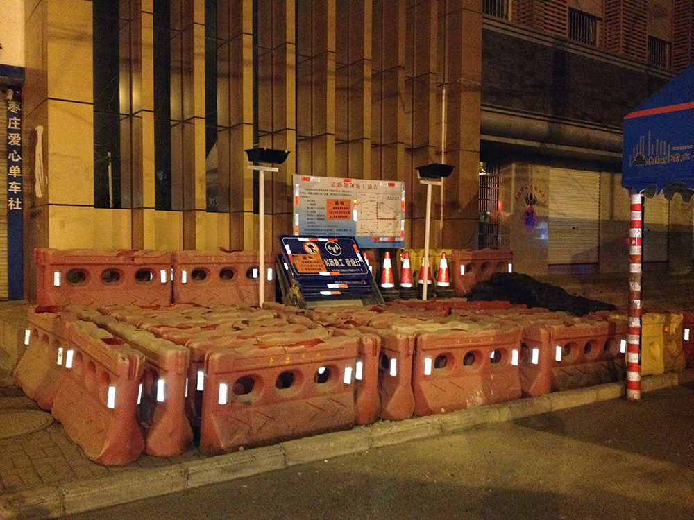 學(xué)校門(mén)前,設(shè)立學(xué)生通道;醫(yī)院門(mén)前,設(shè)立專(zhuān)用救護(hù)車(chē)通道;銀行門(mén)前,設(shè)立運(yùn)鈔車(chē)專(zhuān)用通道;各個(gè)路口在進(jìn)行圍擋前一日,進(jìn)行道路警示牌安全以及施工通告散發(fā)。道路施工完畢,項(xiàng)目部將所有施工材料(如:硬質(zhì)圍擋、大小水馬、路障、安全警示牌、安全警示標(biāo)語(yǔ)以及道路通示牌等材料)進(jìn)行合理化一的規(guī)整。