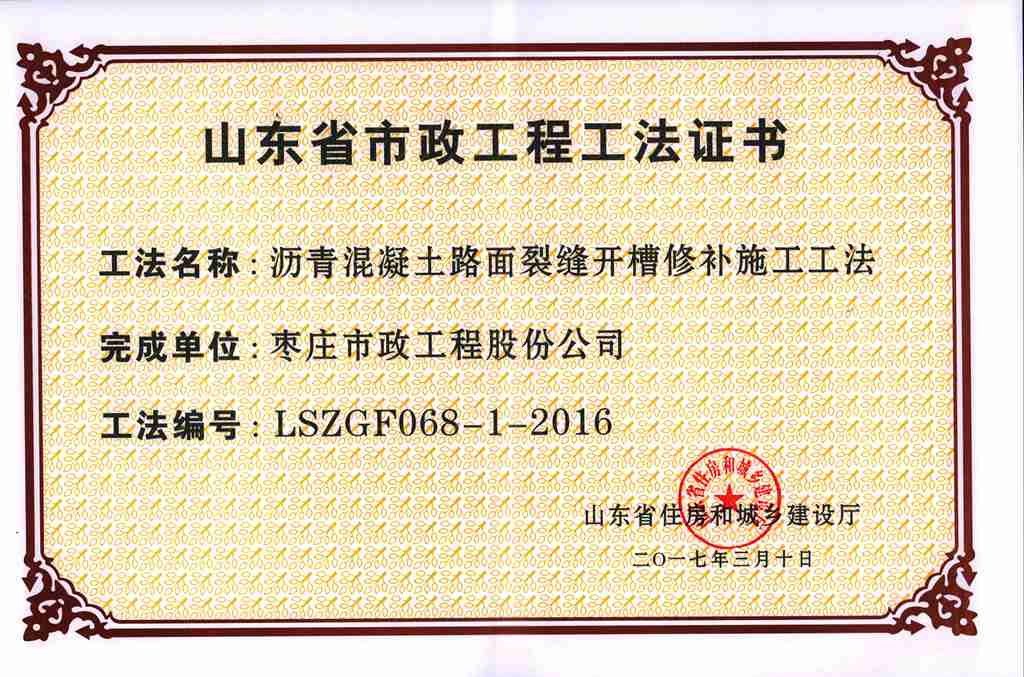 近日,從山東省住房和城鄉(xiāng)建設(shè)廳傳來(lái)喜訊,我公司申報(bào)的《瀝青混凝土路面裂縫開(kāi)槽修補(bǔ)施工工法》和《人行道方形井座的施工工法》,經(jīng)山東省住房和城鄉(xiāng)建設(shè)廳工法評(píng)審委員會(huì)專家審核評(píng)審,順利獲批山東省省級(jí)工法。