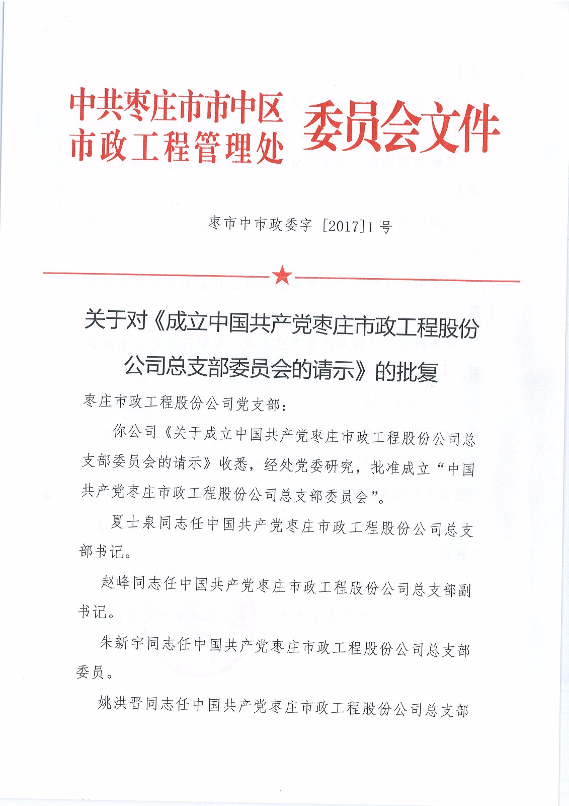 關(guān)于成立公司黨組織的通知