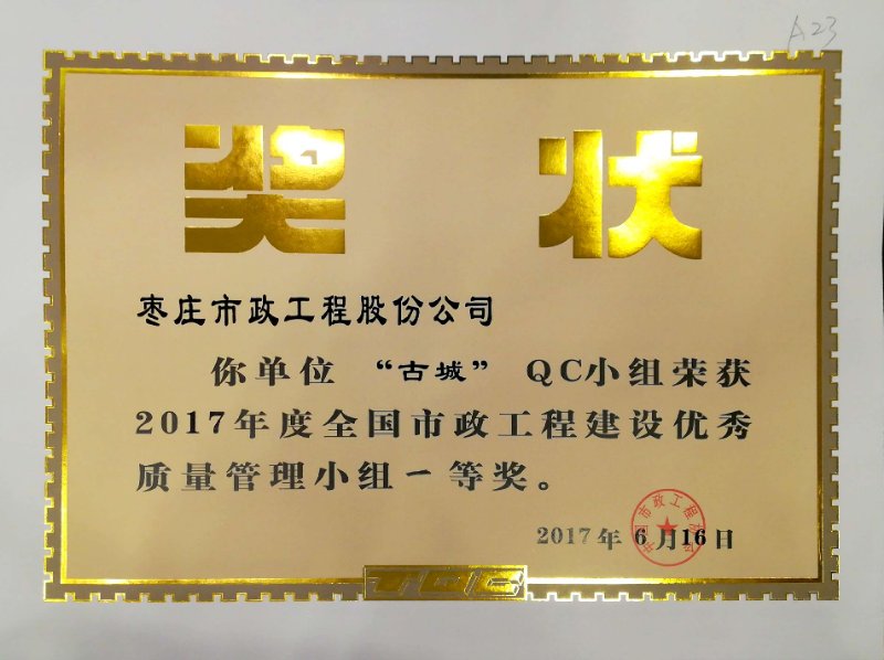 6月21日,2017年全國(guó)市政工程建設(shè)質(zhì)量管理小組成果發(fā)布會(huì)在四川成都召開。此次參加現(xiàn)場(chǎng)發(fā)布的共有289項(xiàng)。我公司 “創(chuàng)新手工雕琢式欄桿施工工藝”(聚力)QC小組和“研發(fā)直埋管道內(nèi)電纜防盜的新型施工工藝”(古城)QC小組,同時(shí)榮獲2017年度全國(guó)市政工程建設(shè)優(yōu)秀質(zhì)量管理小組一等獎(jiǎng)。是我公司開展QC小組活動(dòng)以來,取得成績(jī)最好的一次。