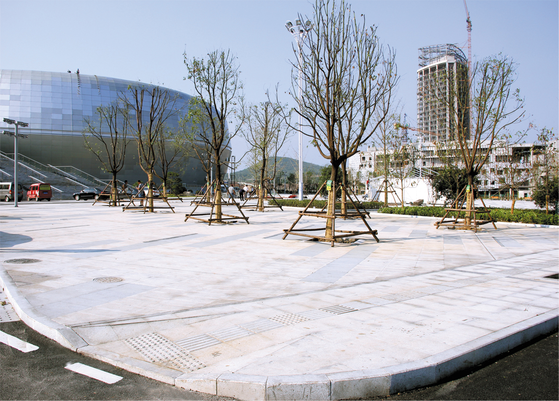 棗莊市體育中心體育館、游泳館室外景觀綠化工程順利竣工