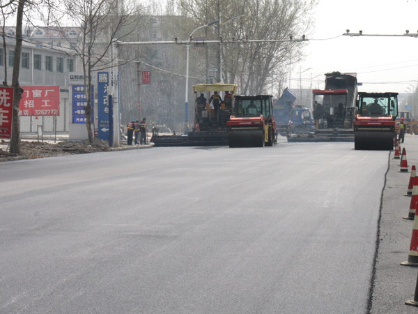 3月31日,在陽(yáng)春二月和煦的陽(yáng)光下,解放南路施工現(xiàn)場(chǎng)一片熱火朝天的景象。在施工圍擋區(qū),內(nèi)兩臺(tái)攤鋪機(jī)并駕齊驅(qū)、交錯(cuò)前進(jìn)。在攤鋪機(jī)身后兩臺(tái)雙鋼輪壓路機(jī)往來(lái)碾壓、有條不紊。下午,隨著解放南路(十里泉至嶧城界段)西側(cè)最后一板瀝青結(jié)構(gòu)層攤鋪碾壓工序的完成,解放南路道路維修工程全部結(jié)束,解放路道路維修工程階段性完成。